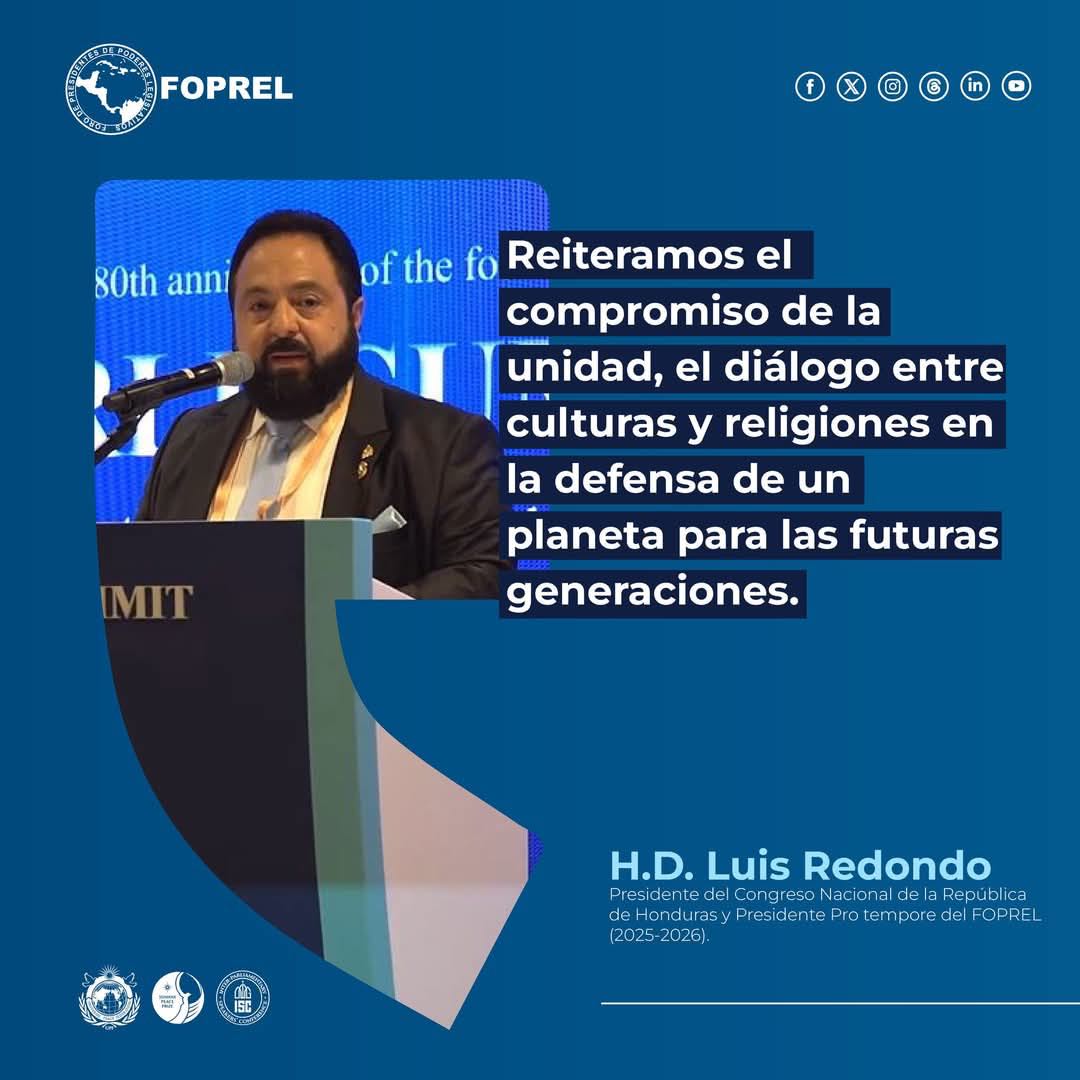 Durante su intervención en la Cumbre UPF 2025, el Presidente del Congreso Nacional de Honduras y Presidente Pro Tempore de FOPREL, Luis Redondo, afirmó: