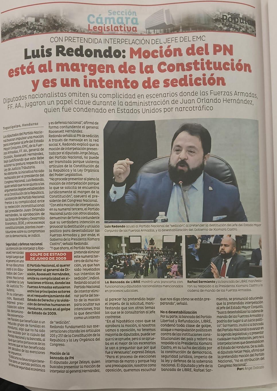 Luis Redondo: Moción del PN está al margen de la Constitución y es intento de sedición