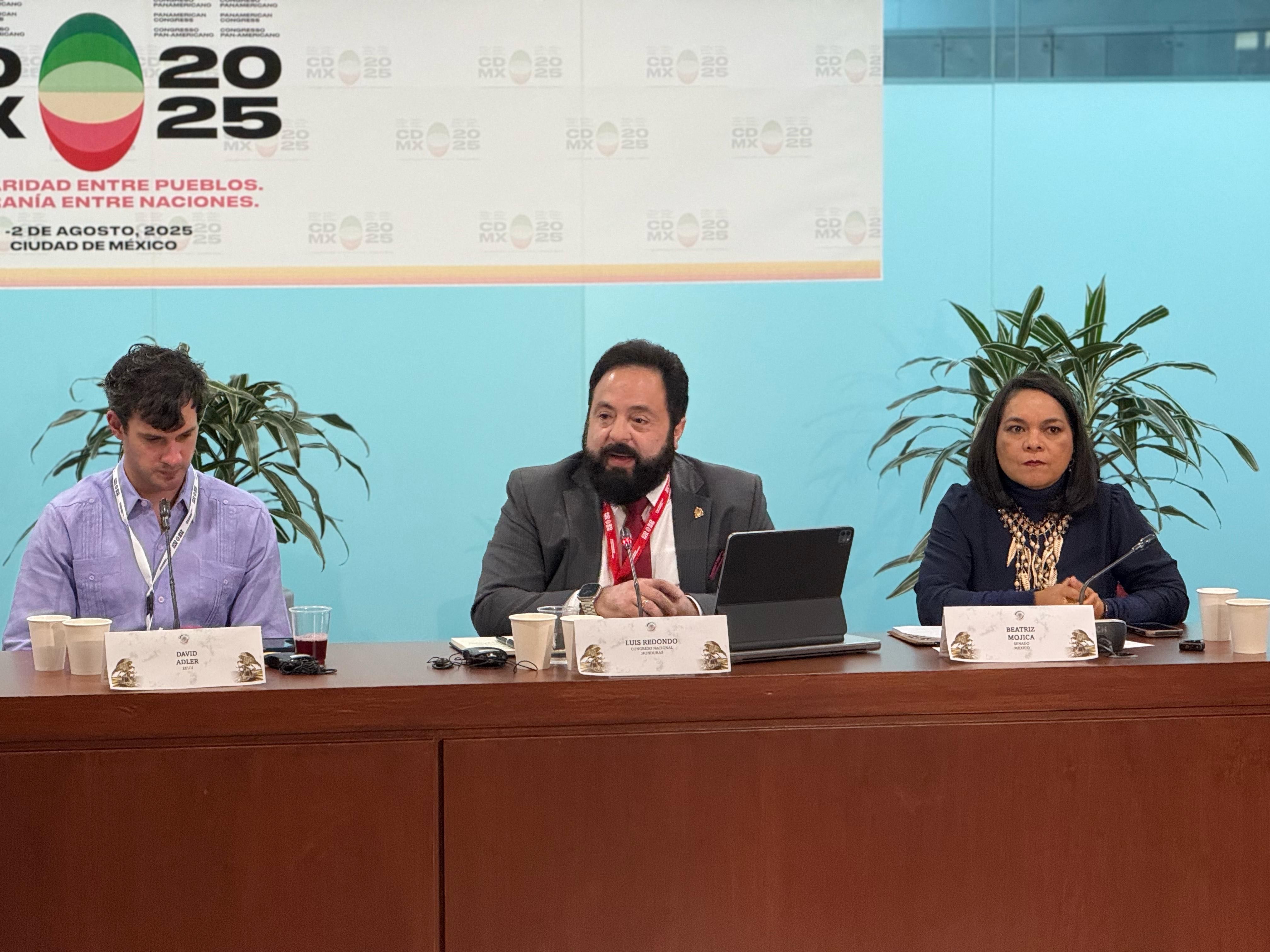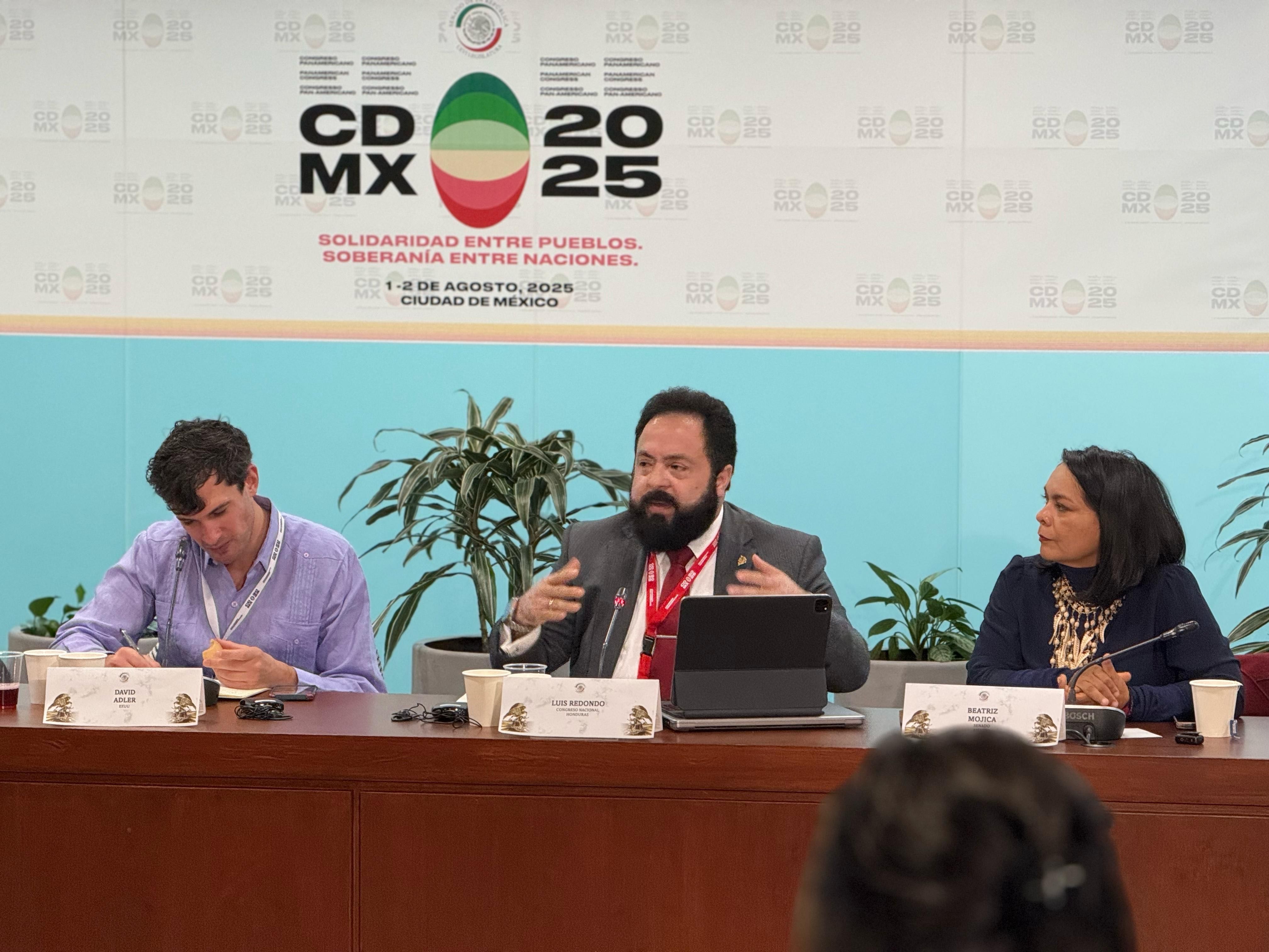 El presidente del Congreso Nacional de Honduras, Luis Redondo, acompañado por los congresistas Silvia Ayala y Ramón Barrios, participa activamente en el Segundo Congreso Parlamentario Panamericano, que se celebra en la Ciudad de México con la presencia de delegaciones legislativas de 12 países d...
